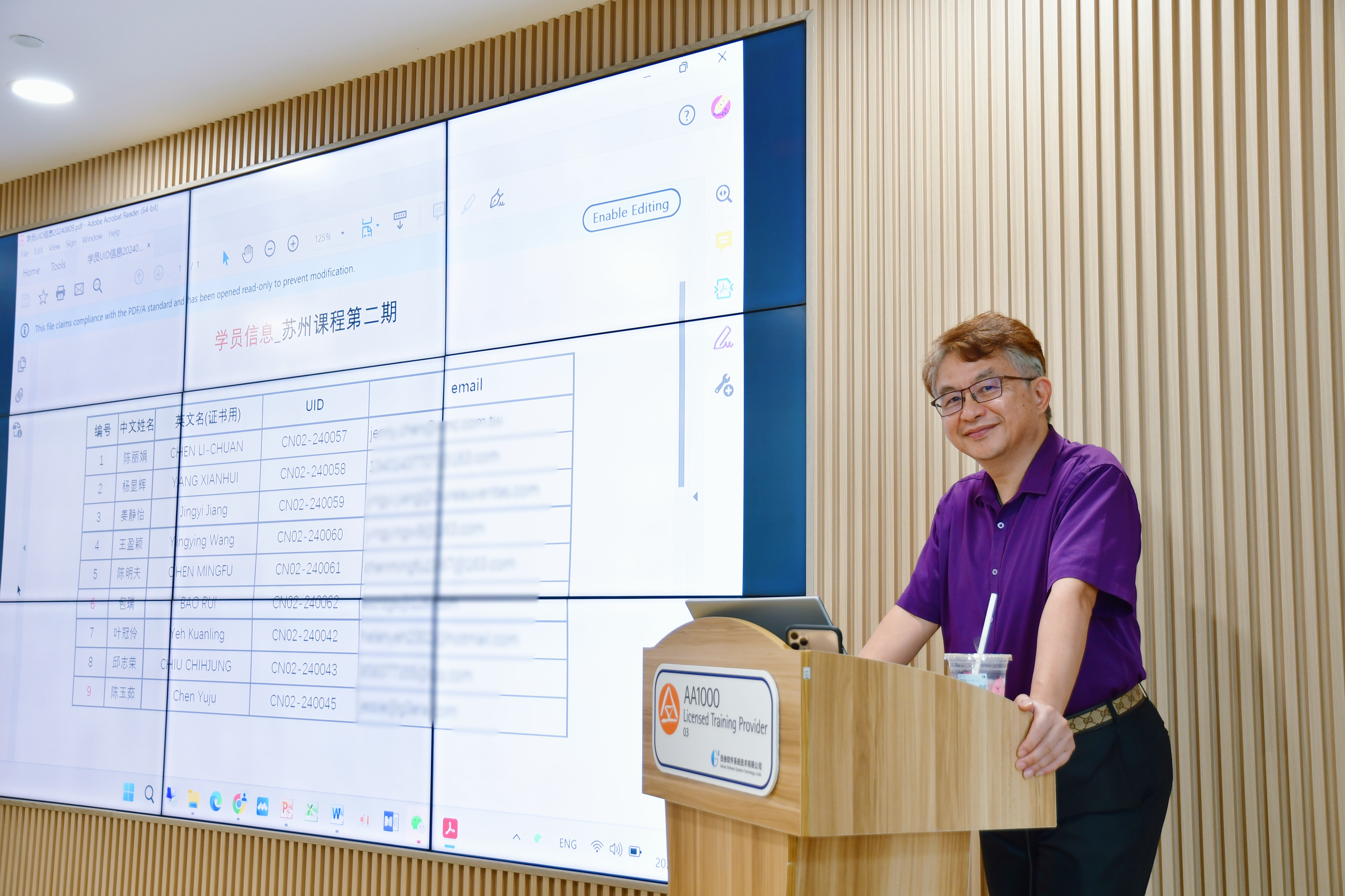 2024年8月12日下午,为期三天的线下课程“ESG-AA1000国际资格人员训练A.B.X课程”如期开班。本课程由AccountAbility英国AA1000 Licensed Training Provider-03中文培训总会授权授课,由苏州技叁软件承办。来自国有企业、体系认证机构、外资企业的不同行业学员完成了本期培训项目。
